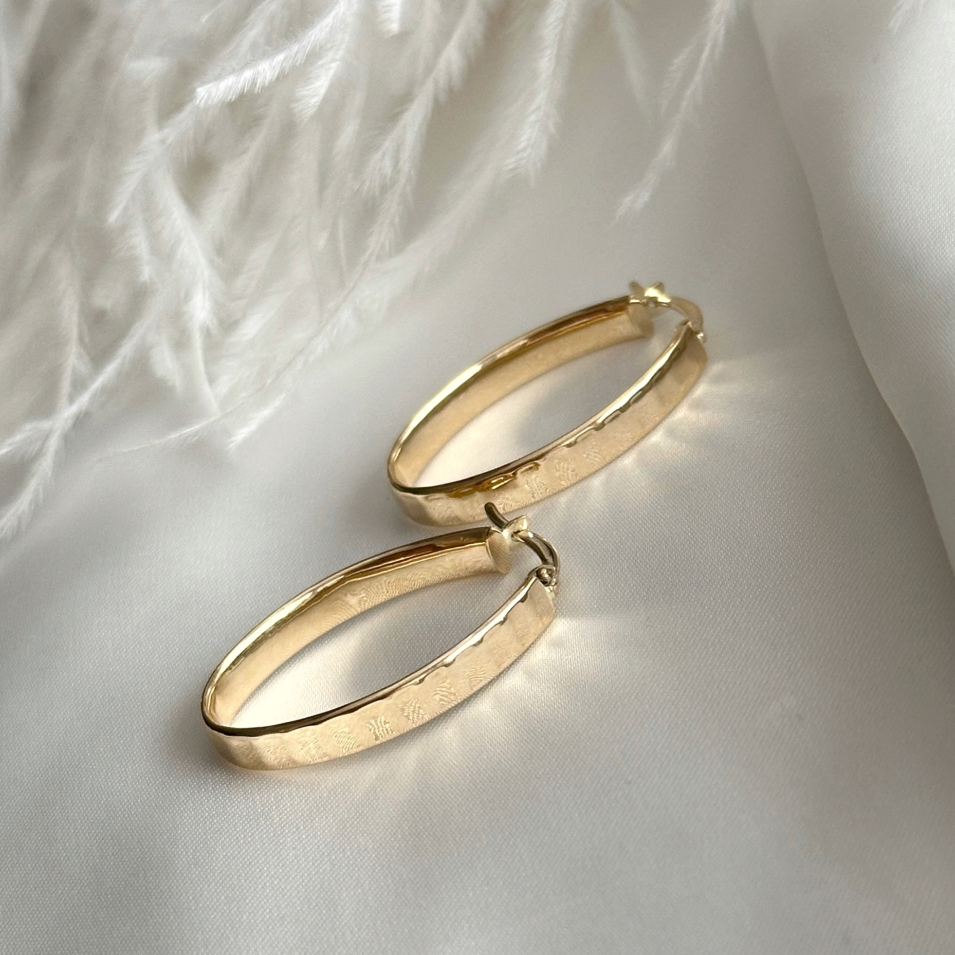 Ovalne, šire, dijamantirane alke od žutog zlata