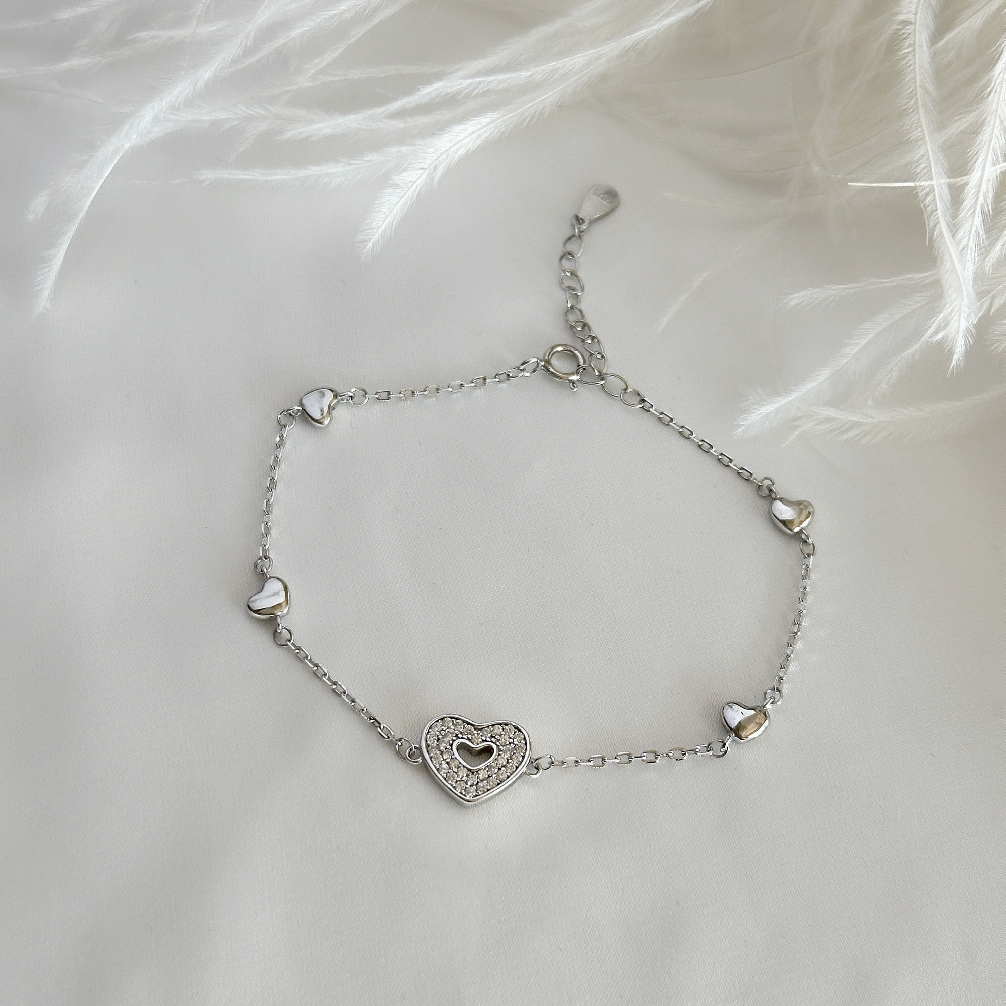 Narukvica od srebra sa srcima i cirkonima