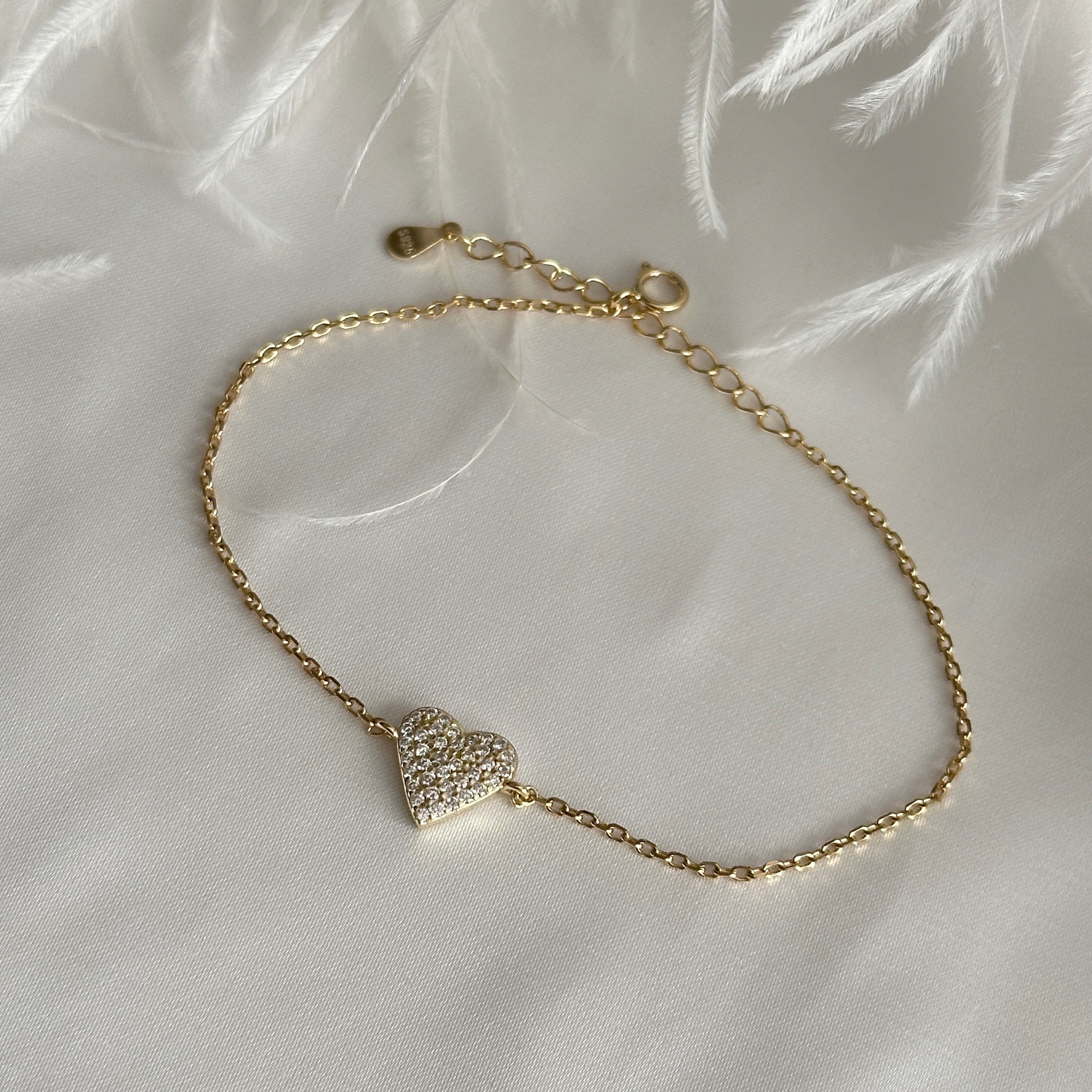 Pozlaćena srebrna naukvica sa srcem od cirkona