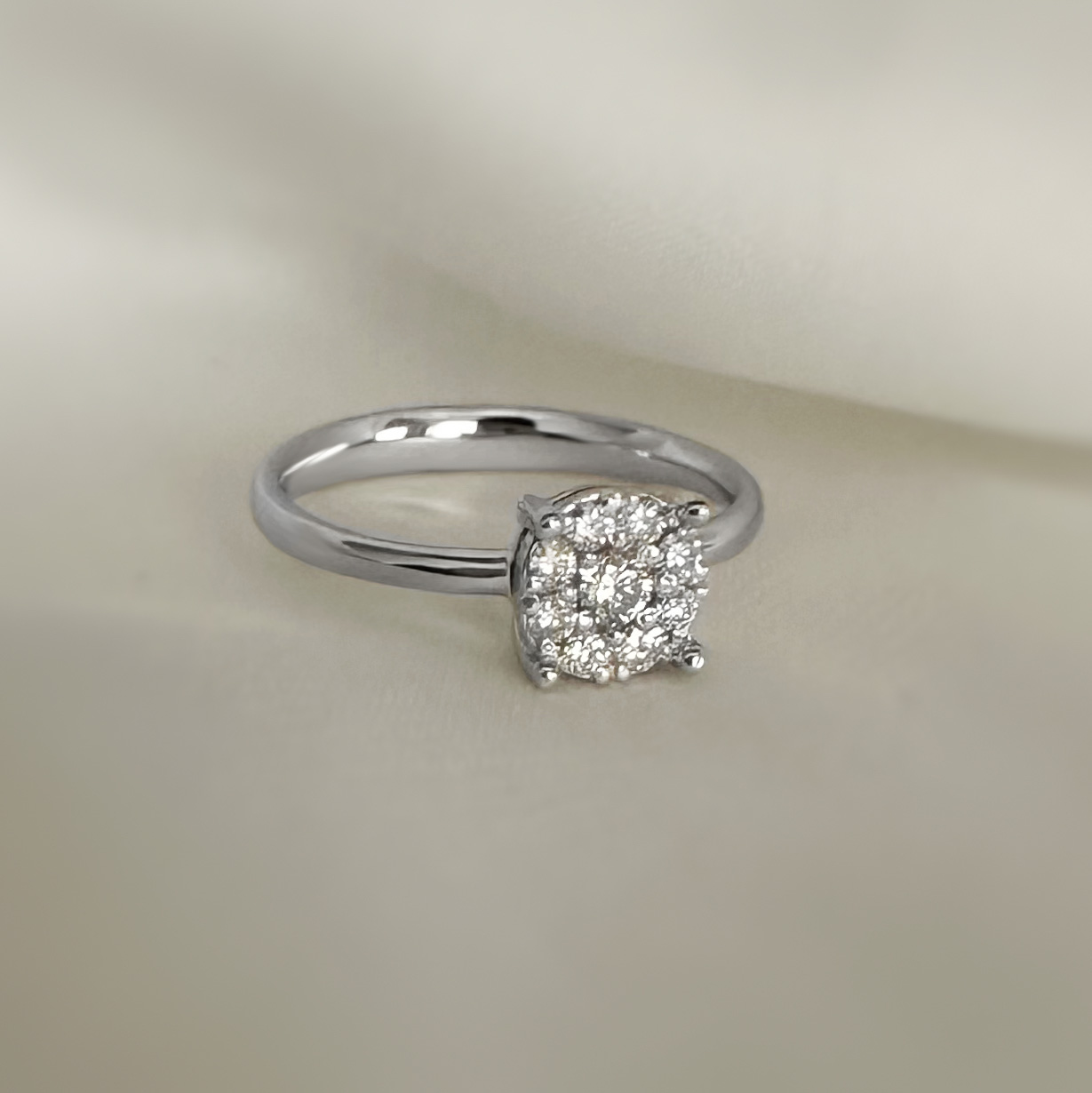 Upadljiv model prstena, belo zlato sa centralnim dijamantom 0.09 ct i dijamntima okolo 0.16 ct Vs-Gh