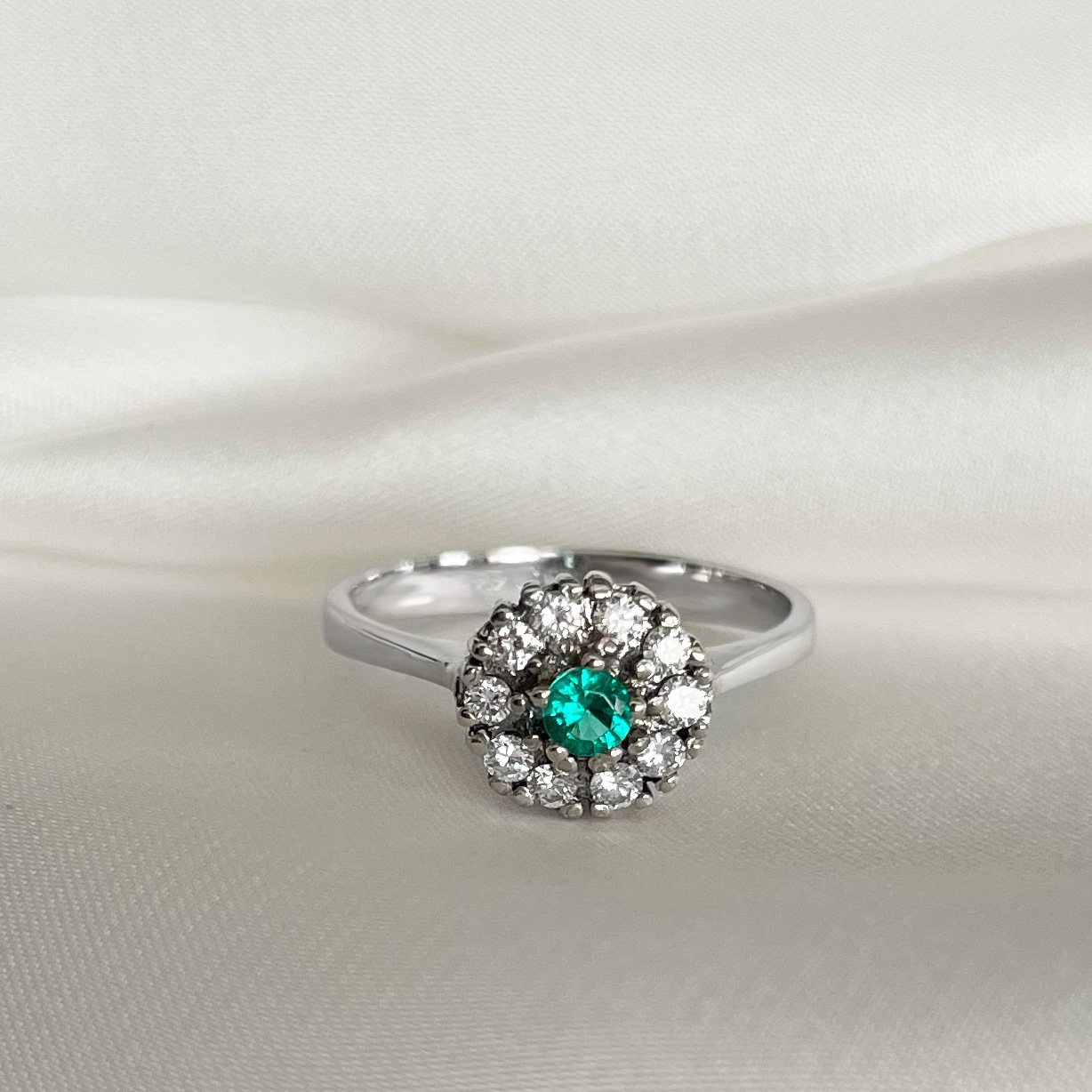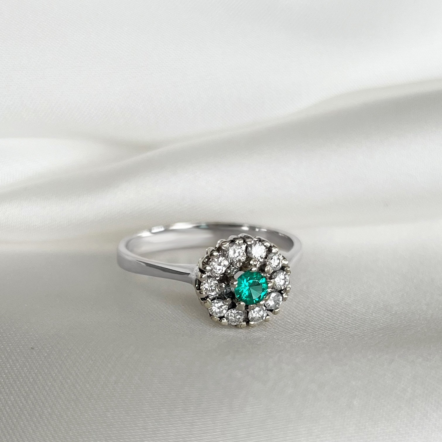 Prsten od belog zlata sa smaragdom 0.10 ct oivičenim dijamantima 0.25 ct Si-Gh