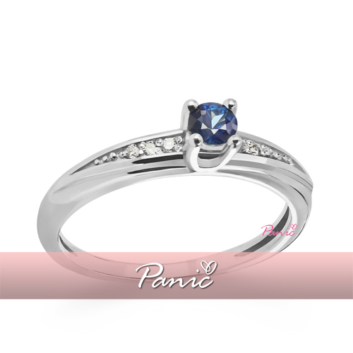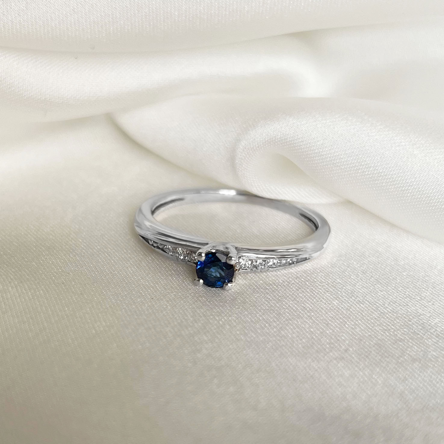 Prsten za veridbu od belog zlata, sa safirom(0.28 ct) i brilijantima(0.07ct VS-GH)