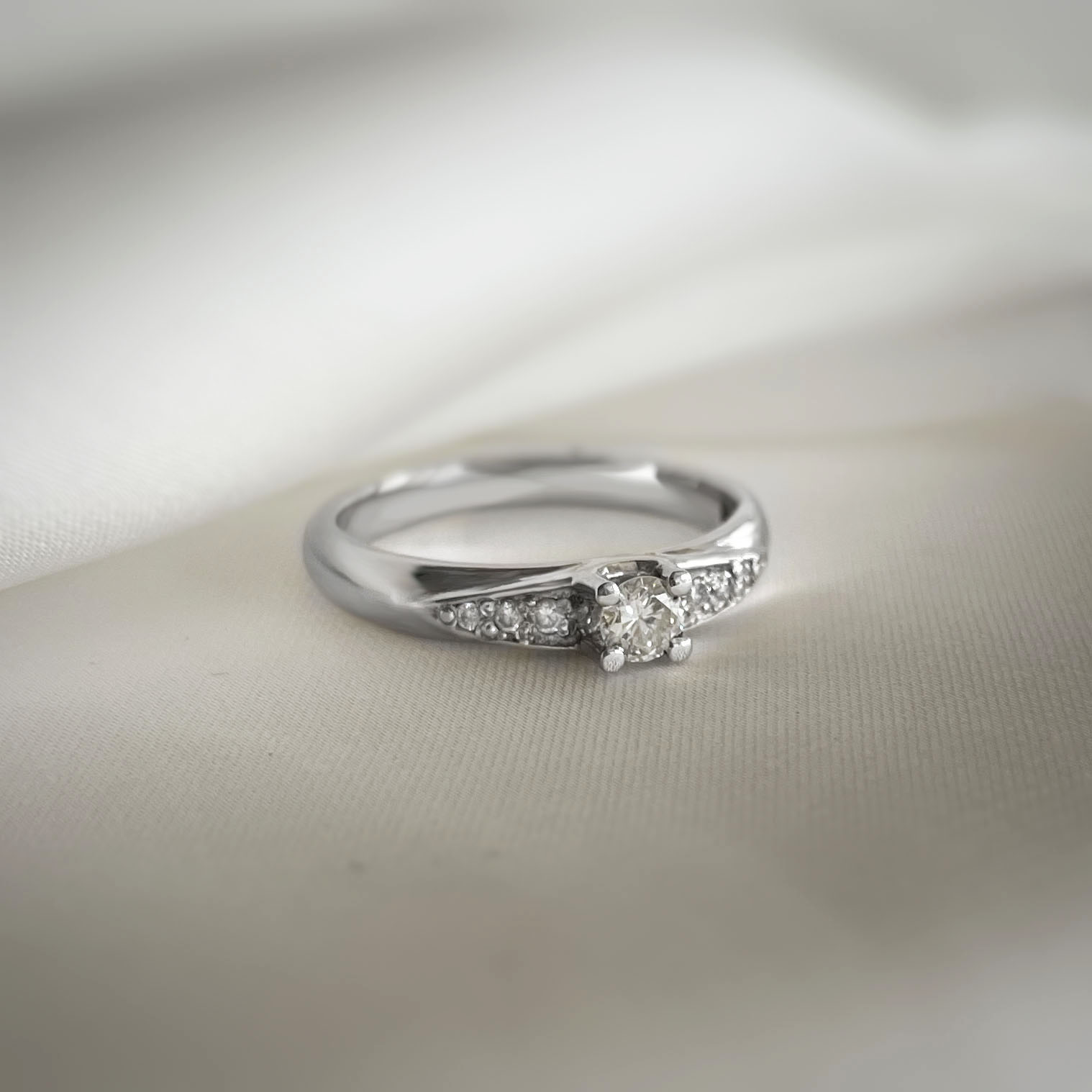 Verenički prsten od belog zlata sa centralnim dijamantom 0.16 ct i sitnijim sa strane 0.06 ct Si-Gh