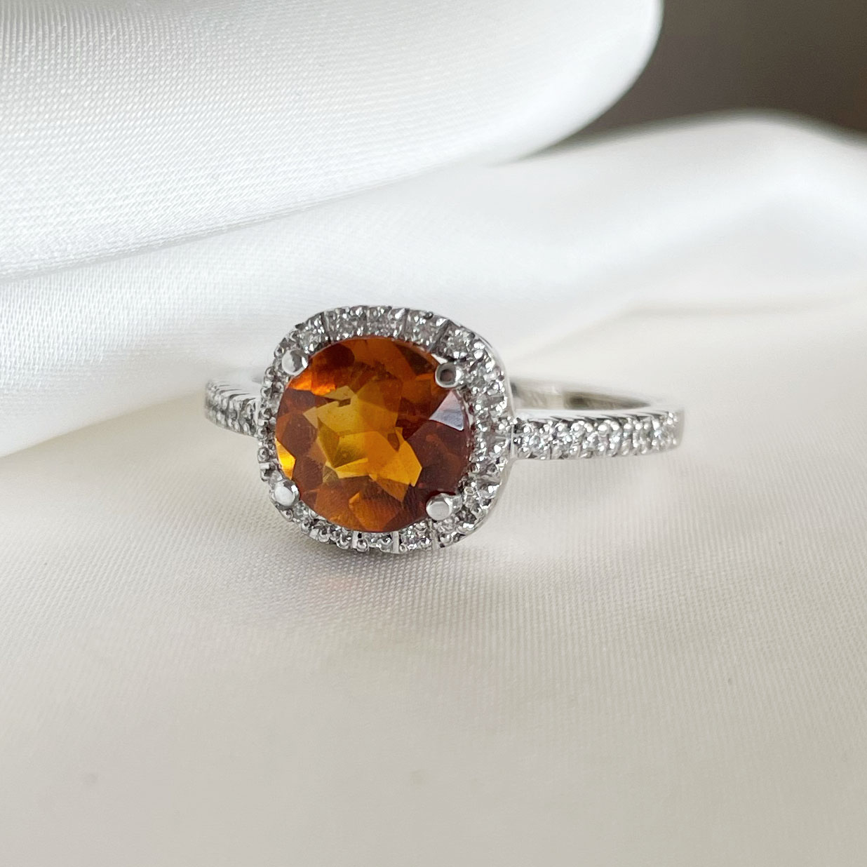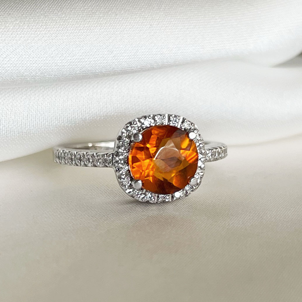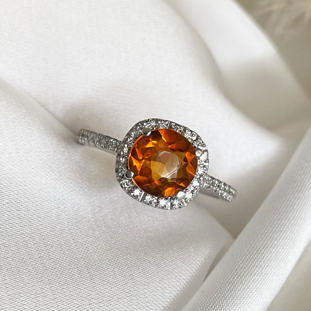 Verenički prsten od belog zlata sa citrinom 1.53 ct i brilijantima 0.13 ct Vs-Gh