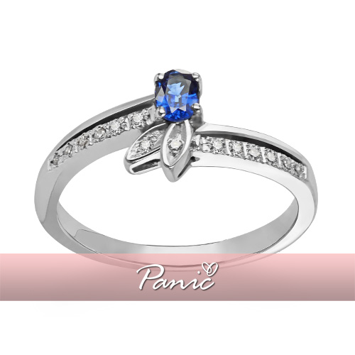 Verenički prsten od belog zlata sa dijamantima 0.07 ct VS-GH i safirom 0.20 ct.