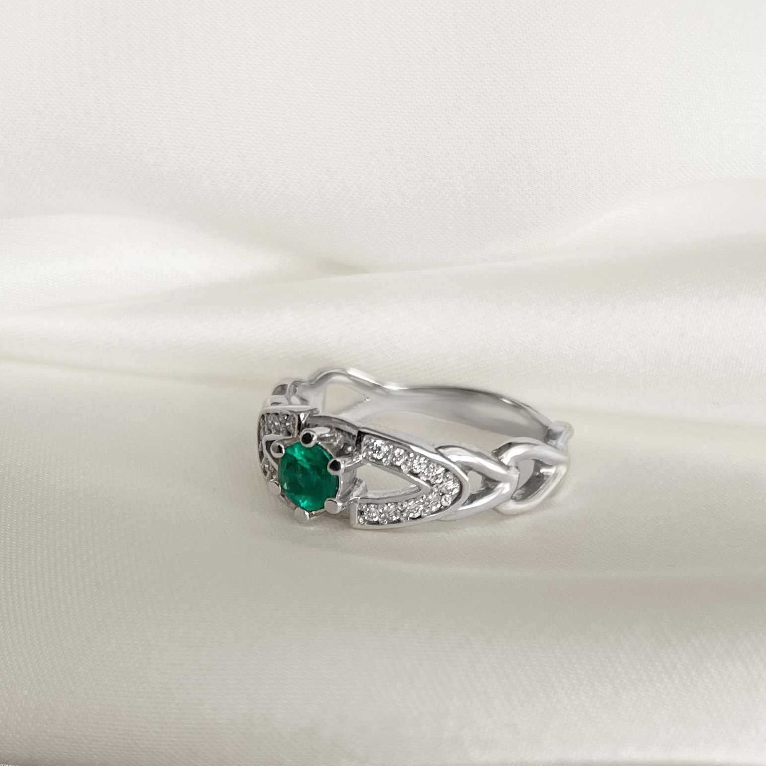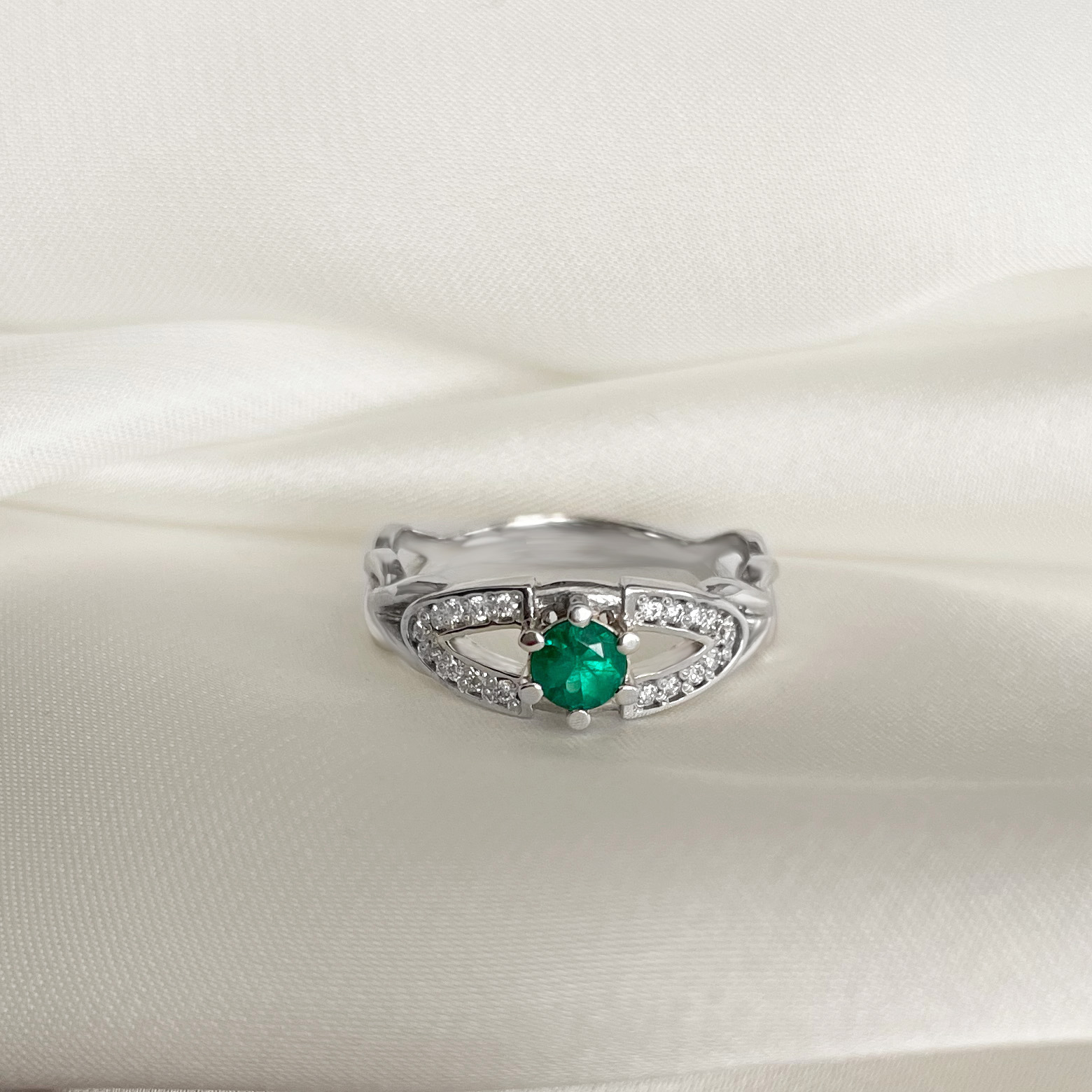 Verenički prsten od belog zlata sa smaragdom 0.25 ct i brilijantima 0.096 ct Vs-Gh