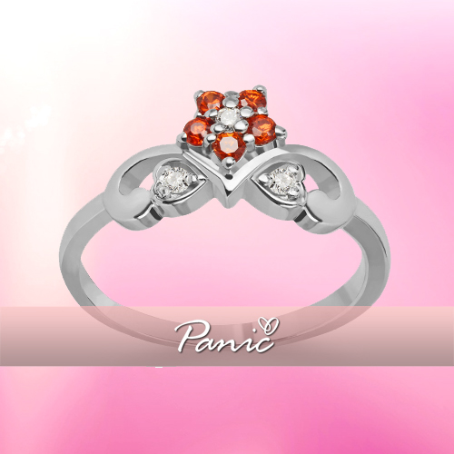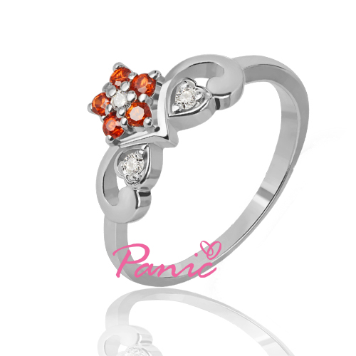 Verenički prsten-cvetić i dva srca, od belog zlata, oplemenjen prirodnim citrinima(0.015ct) i brilijantima(0.04 ct VS-GH)